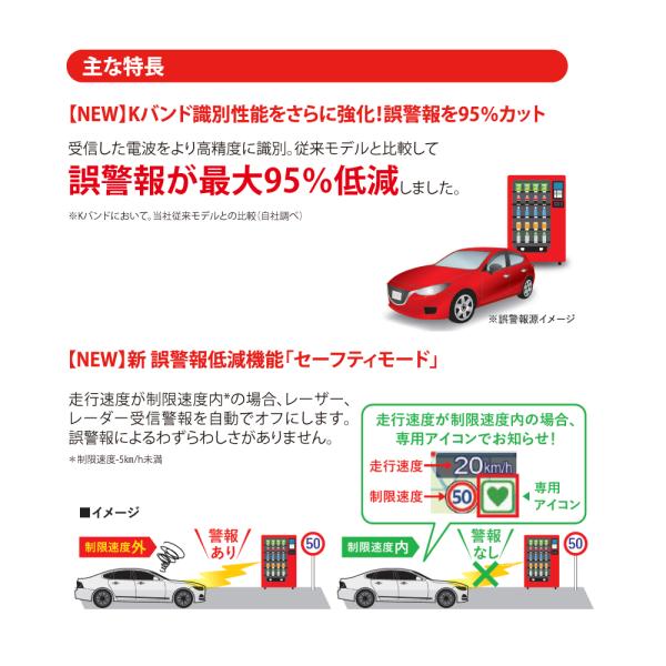 Kバンド識別性能をさらに強化!誤警報を最大95%カット!だから、高感度でもうるさくナイ!