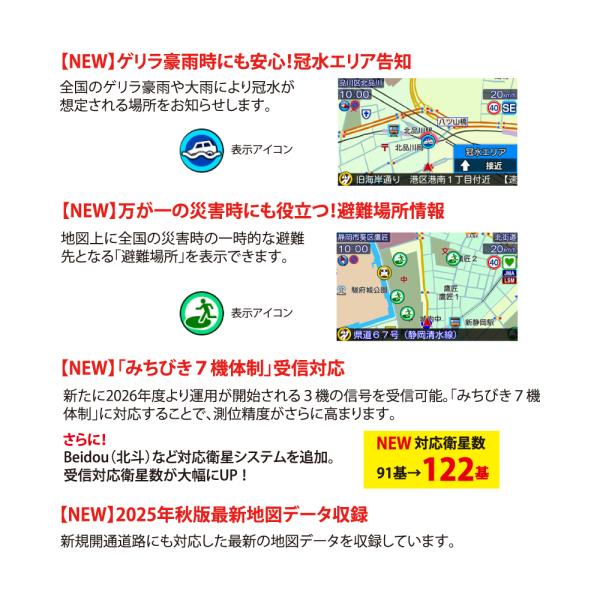 「みちびき7機体制」受信対応。2025年秋版最新地図データ収録。