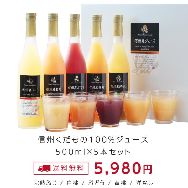 信州産100%果物ジュース500ml 5本セット