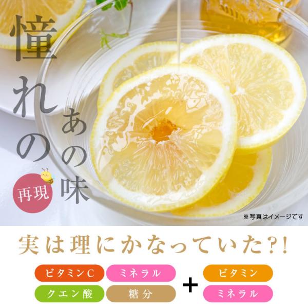 レモン(国産)、砂糖、還元水あめ、ぶどう糖、粉末はちみつ/トレハロース、クエン酸、ビタミンC、乳酸Ca、香料、酸化防止剤(酸素処理ルチン)