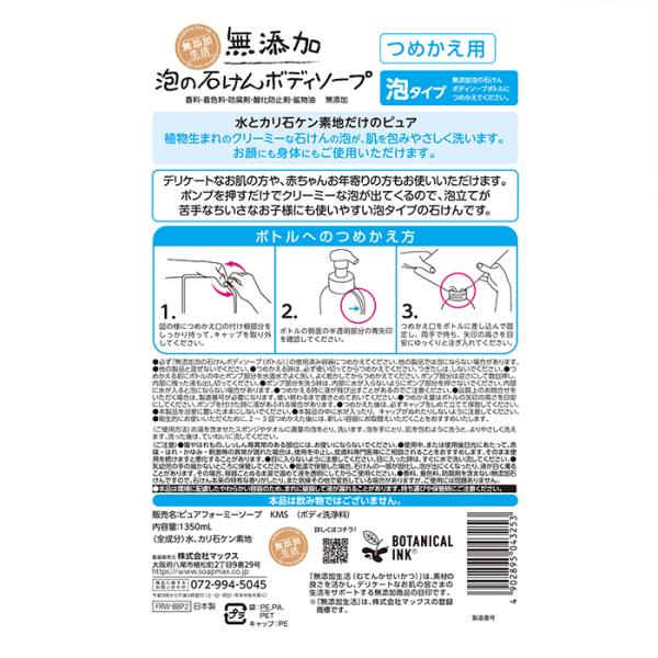 【無添加生活】無添加泡の石けんボディソープ大容量(つめかえ用)3個セット