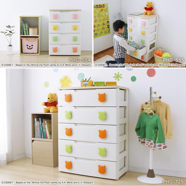 キッズチェスト 完成品 プーさん たんす PHG-725H ワイド5段 ディズニー
