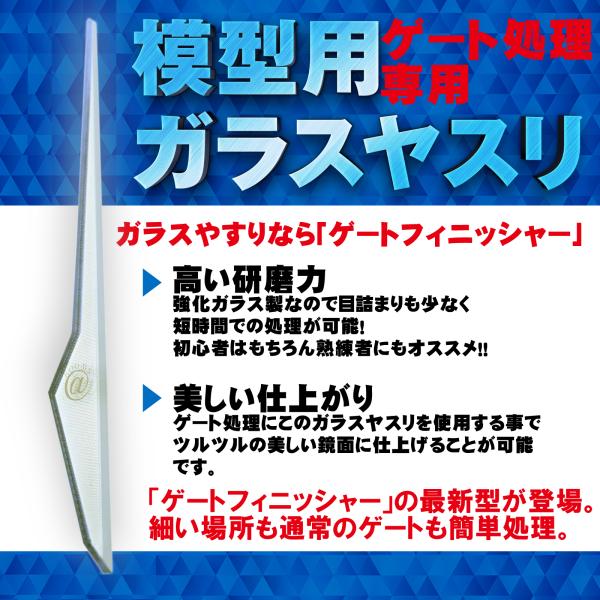 *類似商品にご注意ください! 【ゲート処理専用ガラスヤスリ】 特殊加工された強化ガラス製で、プラモデルやガンプラのゲート処理後の表面処理を美しく仕上げることが可能です。仕上げ磨き用としてゲートの切断面をこのヤスリで研磨すれば、ツルツルの鏡面に仕上がります。