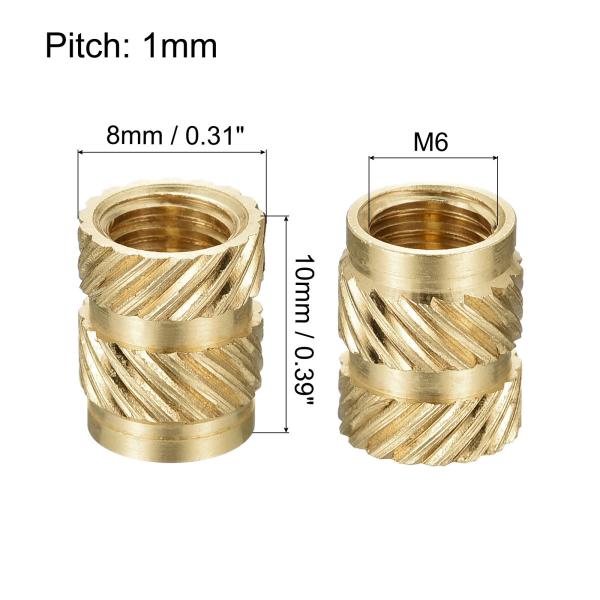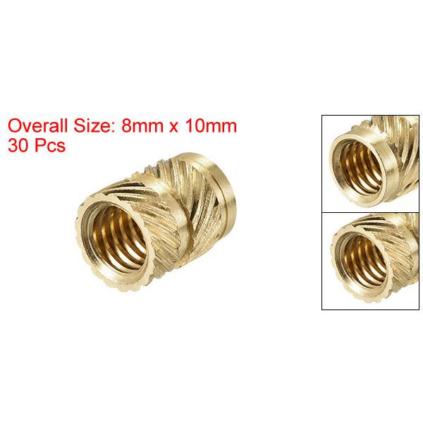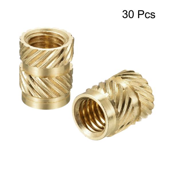 uxcell ローレットインサートナット M6 x 10mm L x 8mm OD メススレッド ブラス 埋め込みナット 30個入り