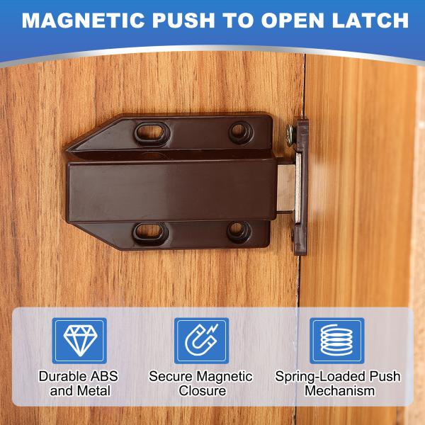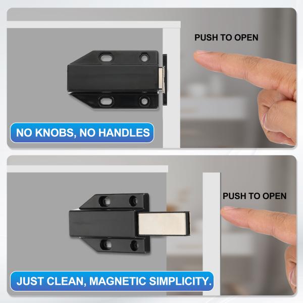 耐久性のある材質:A B S樹脂と金属で組成されたマグネット戸棚ラッチで、外側の保護ケーシングはA B Sエンジニアリングプラスチック製です。優れた安定性を提供し、割れにくく、耐久性を高めます。安全な磁気閉じ:スプリング式プッシュ仕掛けにより簡単にロック/ロック解除が可能で、ハンドルやノブが不要です。内蔵磁石により、しっかりとした静かな閉じを実現し、騒音を低減します。