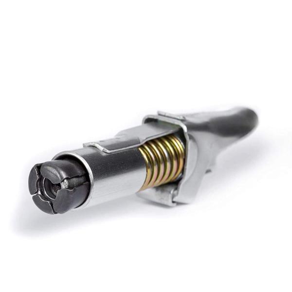 グリースロックカプラー(G.Coupler) はグリスニップルをバネの力でがっちりと固定するので、押さえつけることなくポンピングができ、しかも横漏れしません。