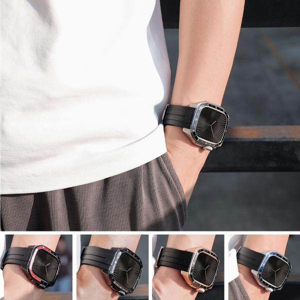apple watch ケース カバーフレーム ステンレス 保護 一体型 おしゃれ 人気 おすすめ 高級 ビジネス バンド ベルト シンプル iwatch ステンレス ビジネス メンズ 男性 男性用 アップルウォッチ シリコン 工具不要 一体式 一体型 ケース付バンド カバー ベルト セット