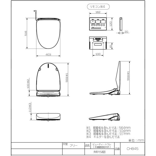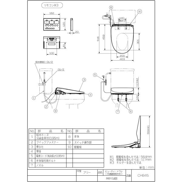 パナソニック 瞬間式 壁リモコン ビューティトワレ MSシリーズ CH845PF 温水洗浄便座 ワイヤレスリモコン アイボリー