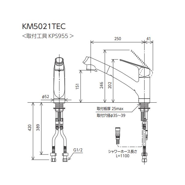 KVK KM5021TEC 水栓 流し台用 シングルレバー式 シャワー付混合栓 キッチン ヘッド e