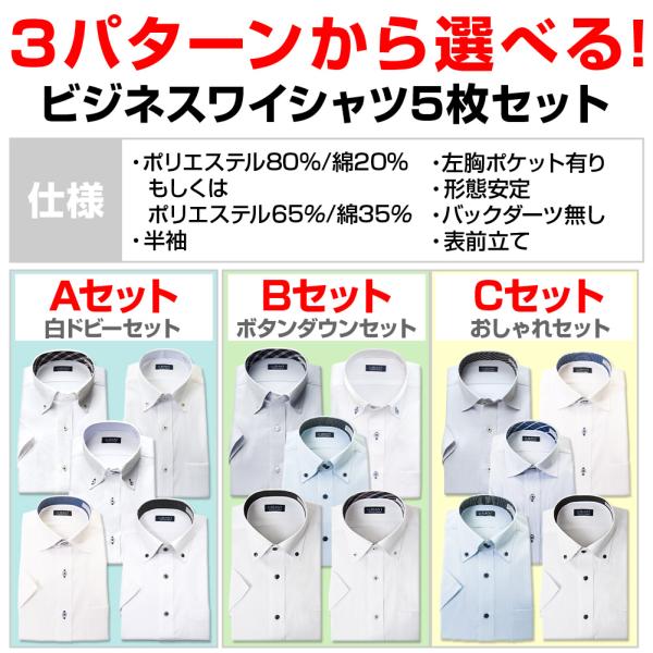 ワイシャツ メンズ 半袖 形態安定 5枚組 おしゃれ メンズ セット 5枚 ビジネス ドレスシャツ Yシャツ 送料無料