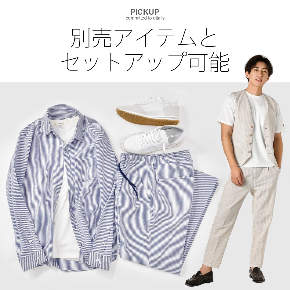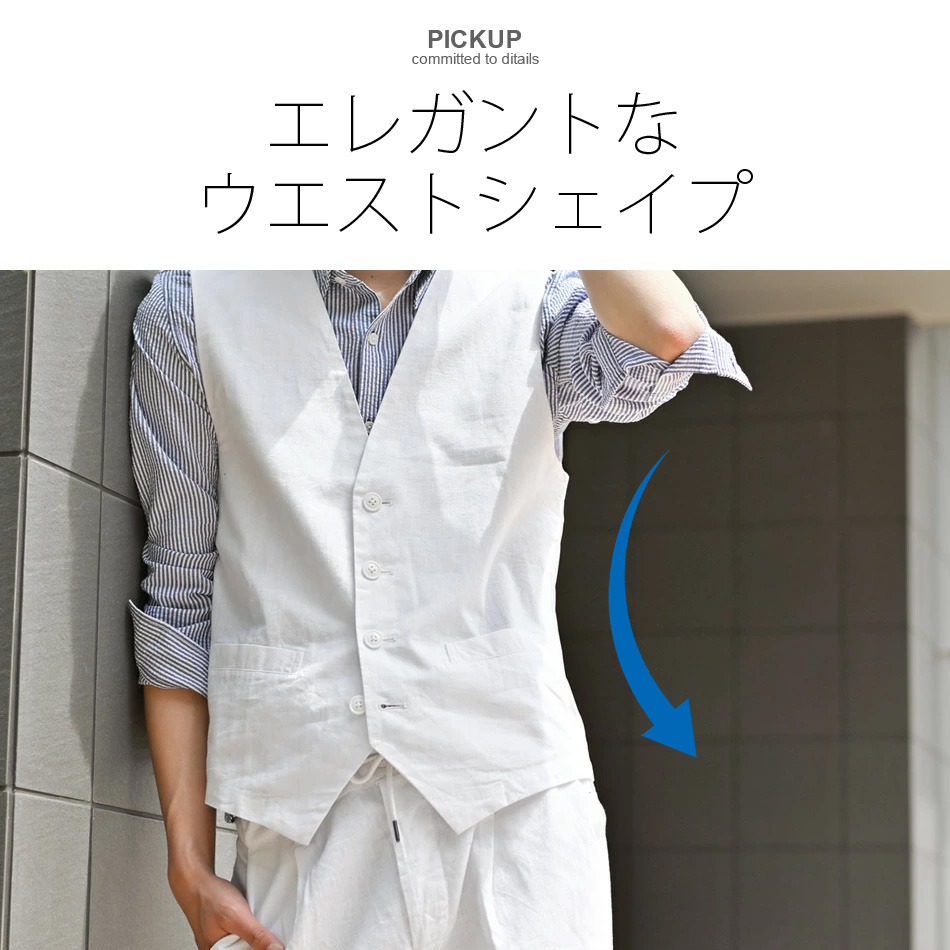 メンズファッション ベスト ジレ チョッキ メンズ 白 紺 藍 ホワイト ネイビー ブルー ブラウン ベージュ 無地 ストライプ サイズ M L XL 2L LL 3L 4L 5L カジュアル 綿麻 コットンリネン シアサッカー ミドル丈 ミディアム丈 ミディ丈 EVOLUTION エボリューション hk エイチケー 34106 大きいサイズ