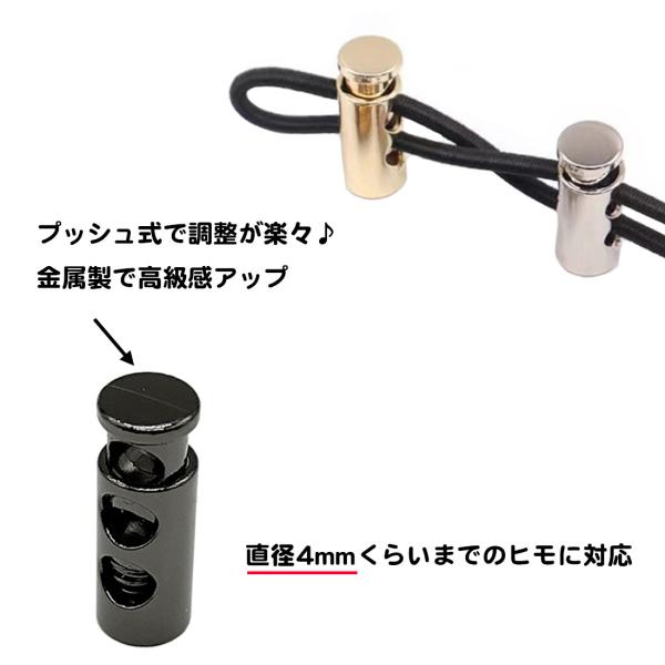 同色2個セット 金属製 コードストッパー 2穴 長さ調節 1mm 2mm 3mm 4mm 丸型 黒 銀 帽子 パラコード メタル ストッパー 紐 靴 コード 2つ穴 後付 送料無料