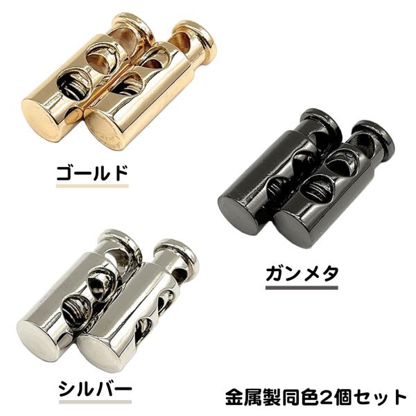 ・金属製の2穴コードストッパー、同色2個セットです。