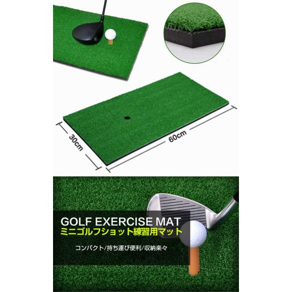 ゴルフ練習マット 室内 スイングマット 30×60cm ゴルフ練習器具 スイング ゴムティー付 厚さ15mm ゴルフ スイング 練習 ゴルフショット練習用マット 自宅