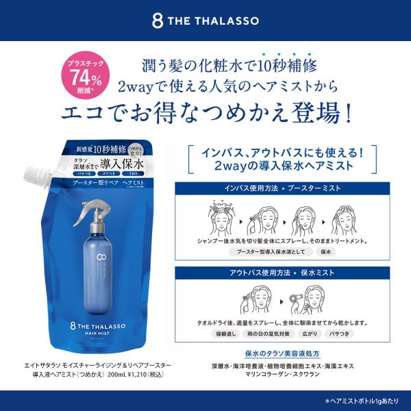 ヘアミスト 詰め替え 2点セット エイトザタラソ 8 THE THALASSO モイスチャーライジング&リペアブースター 導入液 ヘアケア 寝癖直し 200ml