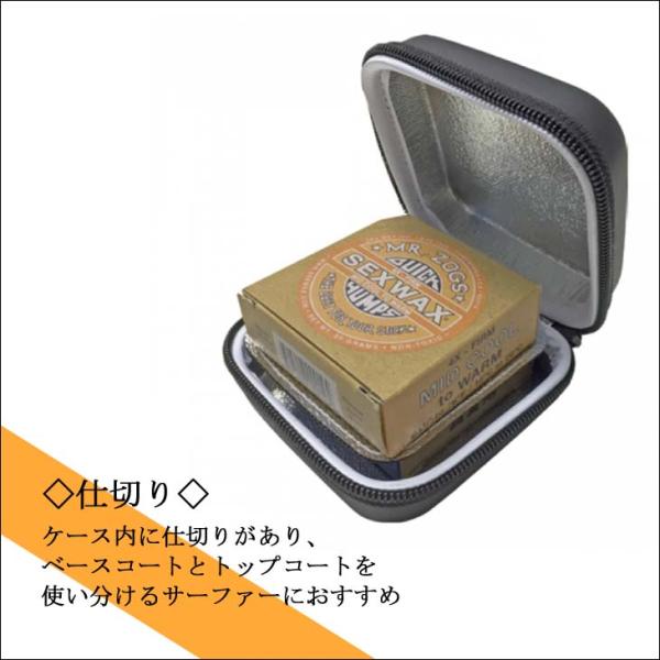 ケース内に仕切りがあり、ベースコートとトップコートを使い分けるサーファーにおすすめ。