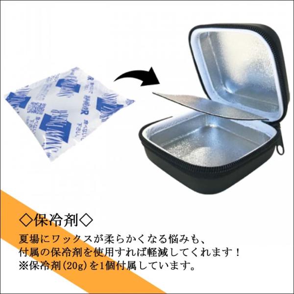 夏場にワックスが柔らかくなる悩みも、付属の保冷剤を使用すれば軽減してくれます。