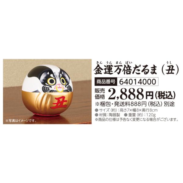 水晶院shop ★★★★★ 4.0(3,678件) 牛の開運置物を飾りましょう! 金運万倍だるま(丑) 【金運万倍だるま(丑)】(きんうんまんばいだるま うし)おうちに開運置物を飾りましょう♪♪粘り強い「牛」の七転び八起きの金運力!牛は開運の象徴★★丸々とした姿に込められた金運縁起!!手のひらサイズで飾る場所を選びません。お好きな場所にお飾りください。サイズ(約):高さ7cm×幅8cm×奥行8cm材質:陶器製重さ(約):120g※商品の仕様は予告なく変更になる場合がございます。 水晶院shop 人気ランキング もっと見る 水晶院shop 商品一覧 もっと見る