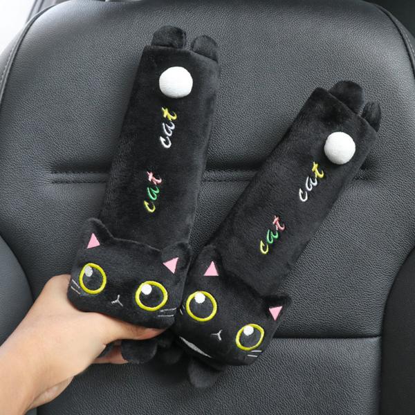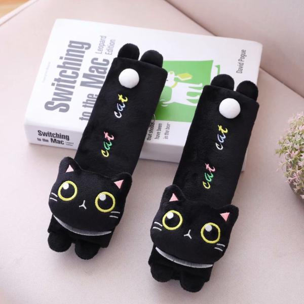 かわいい黒猫デザインのシートベルトカバー