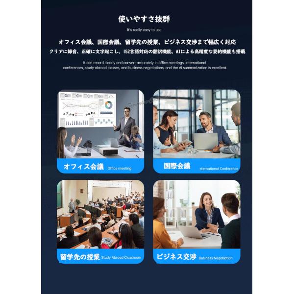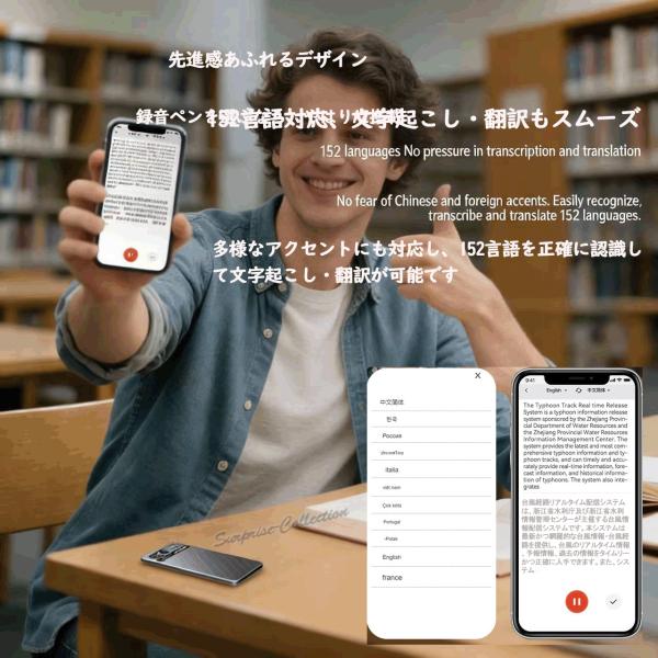 多様なアクセントにも対応し、152言語を正確に文字起こし・翻訳可能。国際会議や海外学習にも最適。
