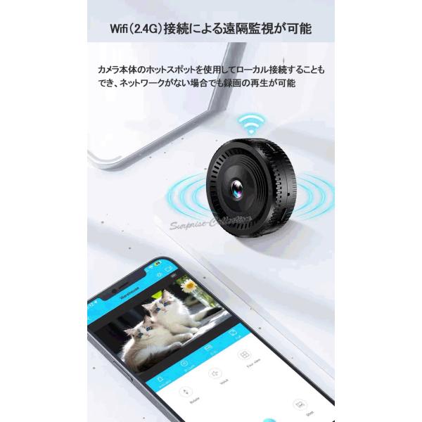 防犯カメラ 小型監視カメラ 長時間録画 ワイヤレス wifi無線 SDカード録画 電池式 充電式 音声記録 屋内 複数同時接続 200万画素 140°広角