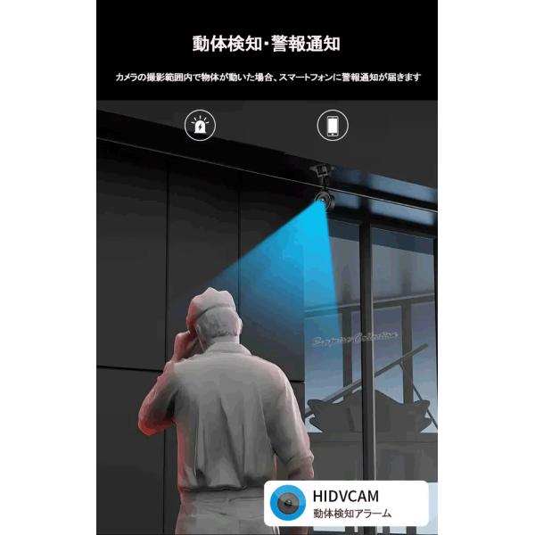 カメラの撮影範囲内で物体が動いた場合、スマートフォンに警報通知が届きます。