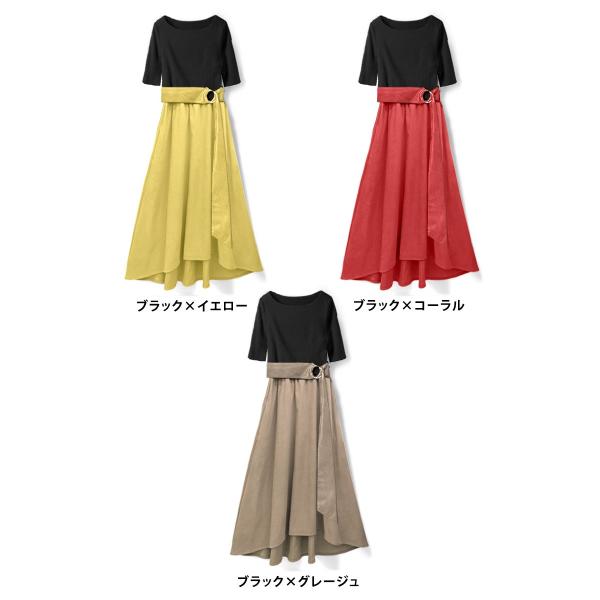 キレイ色のテールカットスカートとベルトが印象的な、おしゃれワンピセットアップ