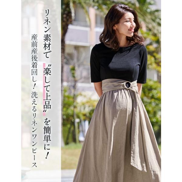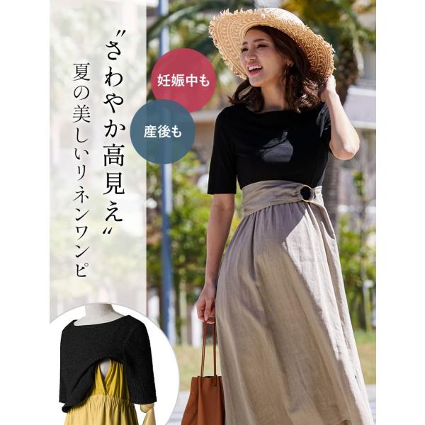 マタニティ 服 マタニティワンピース 夏 3点セット 授乳服 オシャレ リネン トップス ベルト フィッシュテール ロング 産前産後 コットン 春 夏