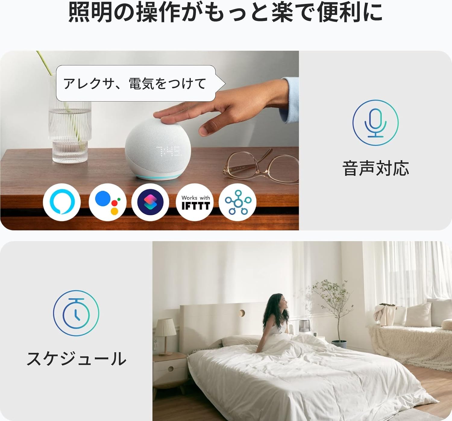 【Works with Alexa認定】本商品はWorks with Alexa認定済みのスマートデバイスです。2.4GHz帯の電波周波数に対応しています。