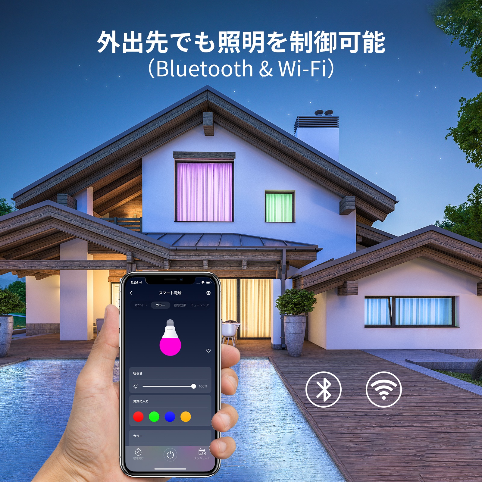 【Bluetooth & Wi-Fi対応】工事不要でスマホ操作が可能。ハブなしでWi-Fi(2.4GHz)に直接接続。Bluetoothも搭載し、Wi-Fiが不安定でも操作可能。