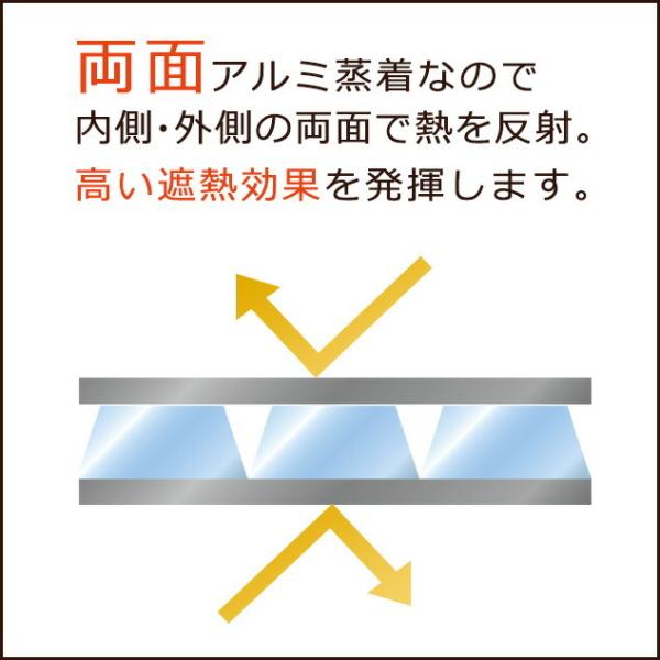 両面アルミ蒸着なので、内側・外側の両面で熱を反射。