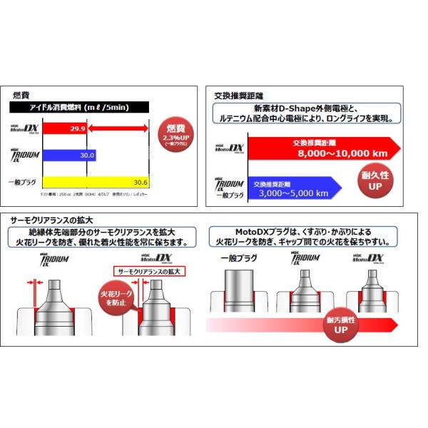 国内初の外側電極形状(2輪専用)採用、ルテニウム配合中心電極採用により、着火性、燃費向上性、耐久性等のプラグに求められる性能を向上させたプラグです。