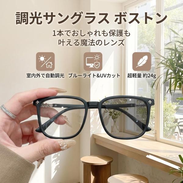 商品名:調光サングラス レディース ウェリントン UVカット ブルーライトカット 大きめ 軽量 サングラス 調光レンズ 40代 30代 20代 A2