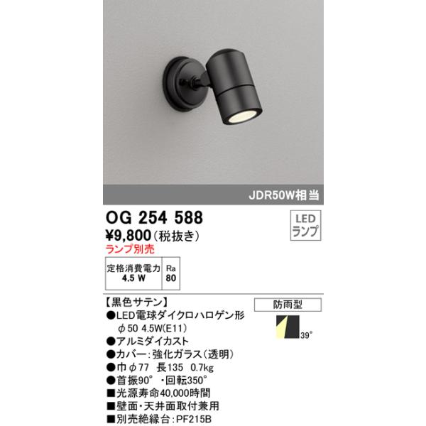 タカラマート ★★★★★ 4.5(460件) 【法人・個人事業主様限定】 54%OFF価格 送料無料 オーデリック OG254588 エクステリア LEDスポットライト 灯具のみ LED電球ダイクロハロゲン形対応 非調光 照明器具 アウトドアライト 壁面・天井面取付兼用 住宅用照明器具 オーデリック アウトドアライト OG254588 検索用カテゴリ9 【LED照明】 【ランプ別売】 【防雨】 【非調光】 タカラマート 人気ランキング もっと見る タカラマート 商品一覧 もっと見る