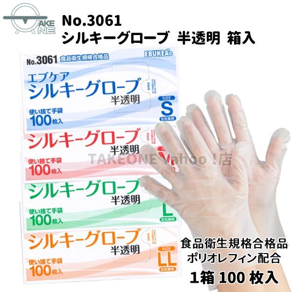 使い捨て ポリエチレン 半透明 エブノ エブケアシルキーグローブ 1箱 100枚入 『1ケース/60箱』 箱入 3061 介護用手袋 作業用手袋 業務用手袋 食品衛生法適合