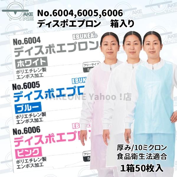 介護用エプロン 使い捨て 食事介助 入浴介助 防水 ポリエチレン製 エブノ ディスポエプロン 箱入 1箱50枚入 『5箱』 ホワイト ブルー ピンク 6004 6005 6006
