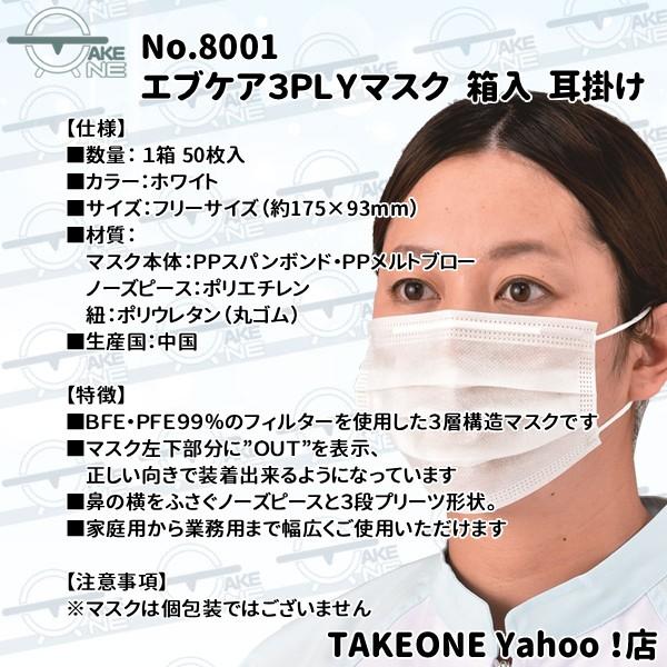 爆買 No.8001 エブケア 3PLY マスク 耳掛け