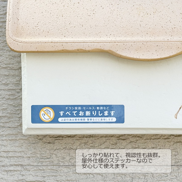 郵便受けや玄関などに貼ることによって、チラシや勧誘印刷物の投函を抑止するステッカーです。