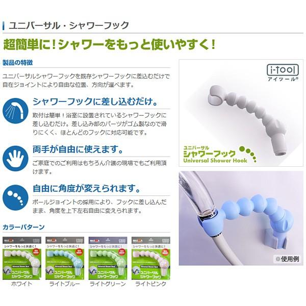 i-tool アイツール ユニバーサル シャワーフック シャワー角度方向 自由自在 ホワイト ライトブルー ライトグリーン ライトピンク フレキシブル シャ