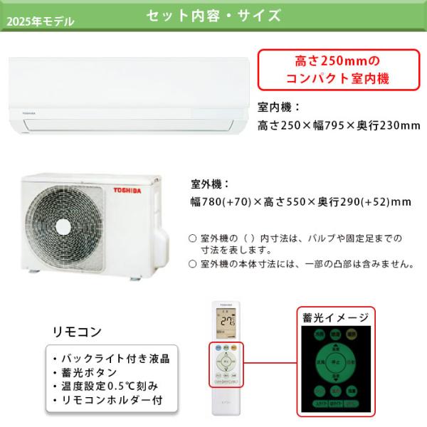 エアコン 冷暖房 東芝 コンパクト 10畳 工事費込 単相100V シンプル ホワイト 2025年 250mm RAS-2815-W