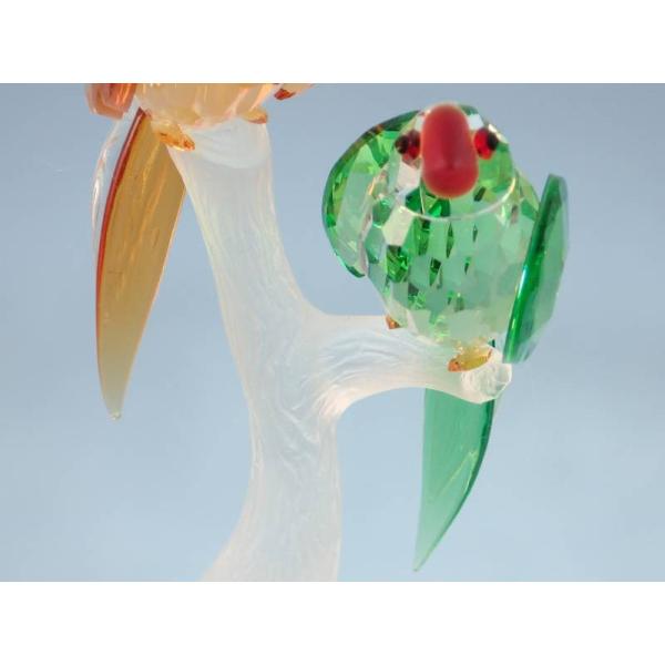 【商品説明】 チェコで生まれて発展したボヘミアクリスタル。色のコントラストを生かした2羽のオウムが木にとまっているかわいい姿です。