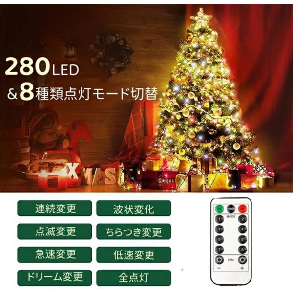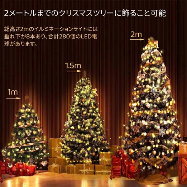 スーパーPayPay クリスマスツリーライト LED イルミネーションライト ストリングライト クリスマス 飾り ライト ドレープライト 280電球 8種点灯モード