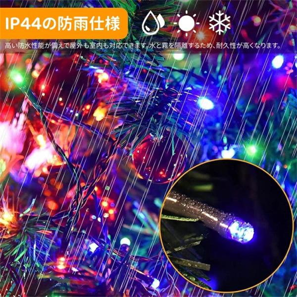屋外で使用できる、IP44の防雨仕様のクリスマスツリー ライトです。約2mのケーブルに、クリスマスツリー イルミネーションが280個配置されています。USBから給電できるので、電池切れの心配もありません。USBケーブルを使用して、スマホ充電器、またはモバイルバッテリーに接続できます。