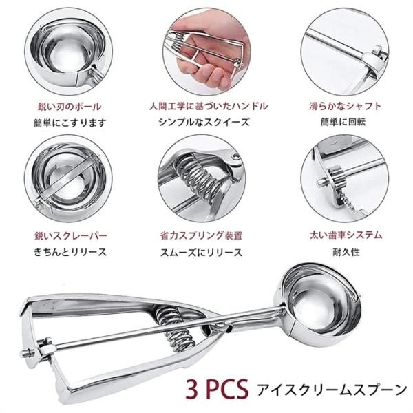 スーパーPayPay アイスクリームディッシャー 3個セット アイスクリームスプーン アイススクープ スプーン 飲食店 料理用 キッチン用品 ポテ