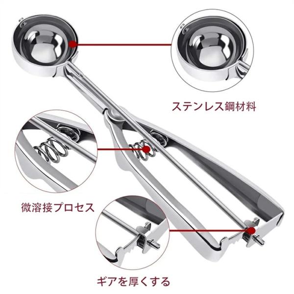 高級ステンレス鋼製、磨き、品質保証、スプリングデザイン、耐久性、厚みのある滑り止めハンドル、手触りの良さ、アイスクリームを楽しむための必需品、果物の掘り出しなどにも使用できます。
