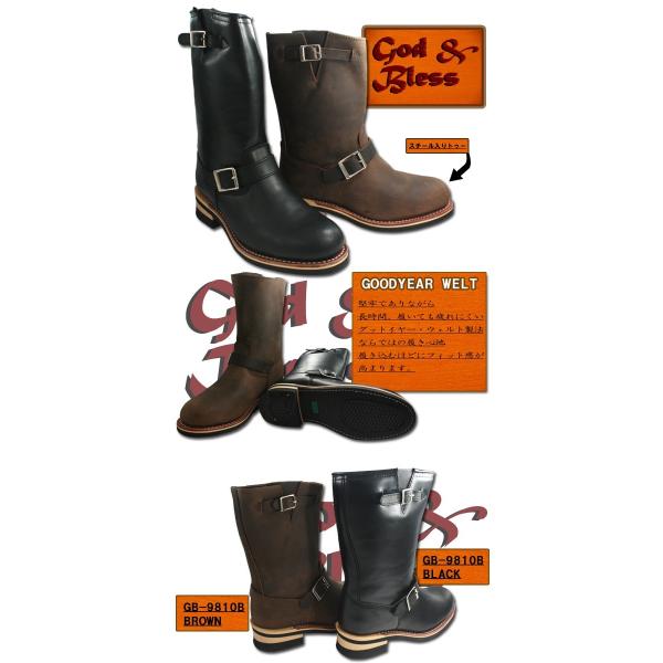 オール本革 エンジニアブーツ メンズ レットウィングタイプ レザー GB-9810B 大きいサイズあり BIGサイズ おしゃれ God&Bless シューズ 紳士靴