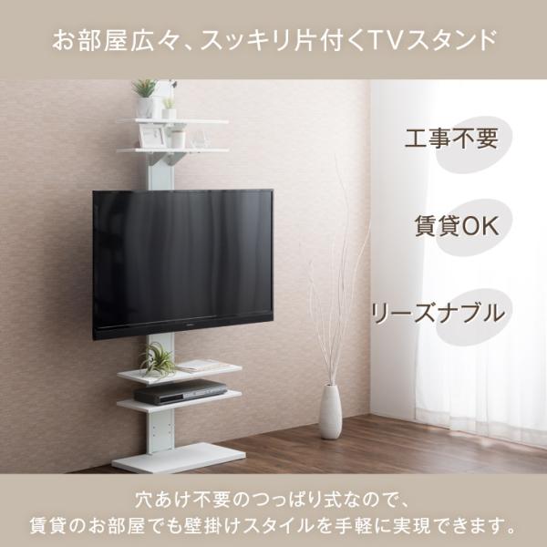 テレビ台 テレビスタンド 壁寄せ ハイタイプ 突っ張り おしゃれ 上下左右 首振り 白 32〜65インチ対応 棚板付き 収納棚