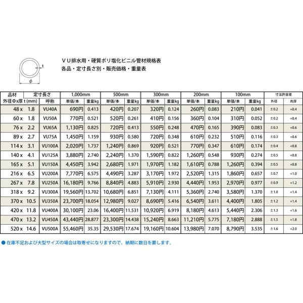 排水用配管 塩化ビニール菅(VU) 定寸販売