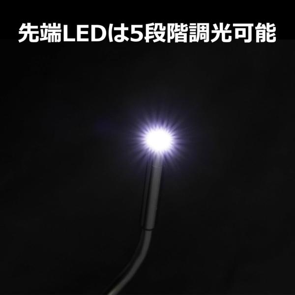また、フレキシブルチューブ先端にLEDライトが付いているため、暗い所でも使用できます。