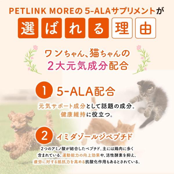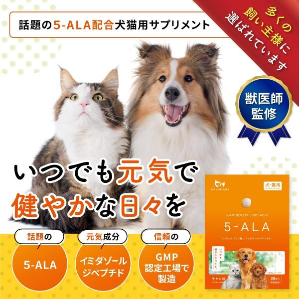 ペット 5-ALA 元気 サプリ 30日分 錠剤 PETLINKMORE ペット サプリメント 犬 日々の健康をサポート 運動能力向上 疲労に対する抵抗力UP 犬 猫
